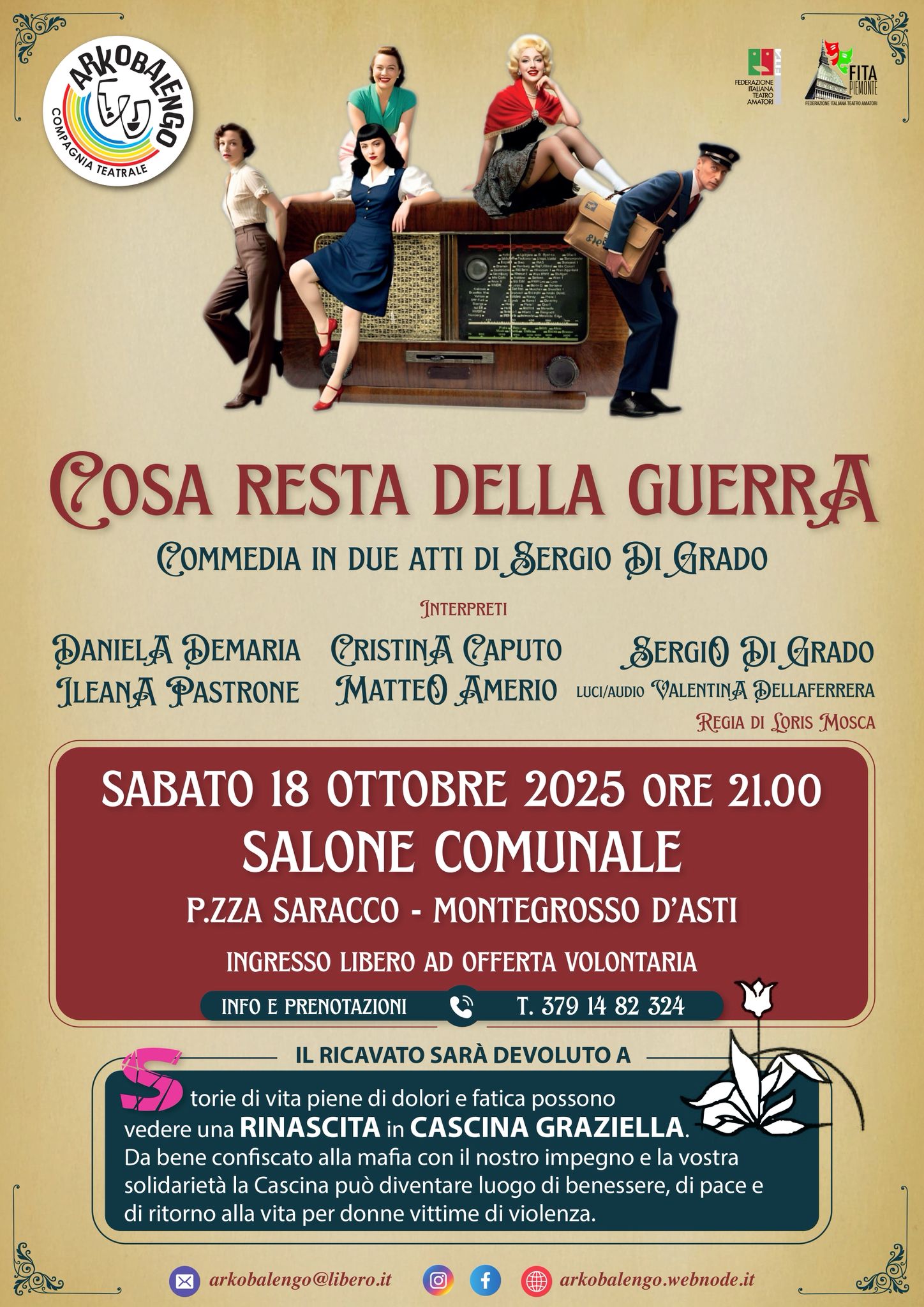 Il 18 ottobre a Montegrosso d'Asti andremo in scena per aiutare la ristrutturazione di Cascina Graziella, bene confiscato alla mafia per accogliere donne vittime di violenza ed abusi.