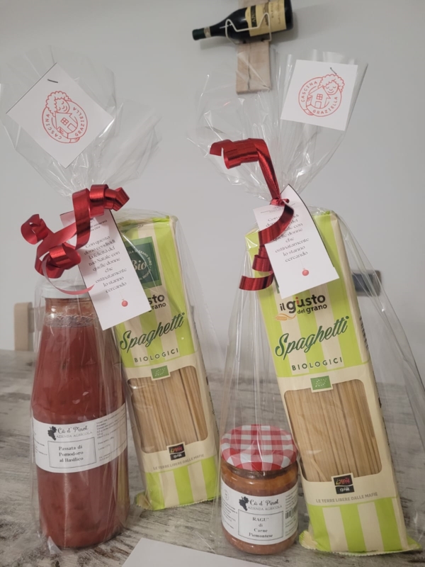 anche quest'anno per il Progetto Cascina Graziella abbiamo pensato di preparare per chi vuole sostenerci una confezione regalo solidale con prodotti delle Aziende Agricole aderenti alla Coldiretti di Asti e con la pasta di Libera terra prodotta con grano coltivato sui terreni confiscati alle mafie.